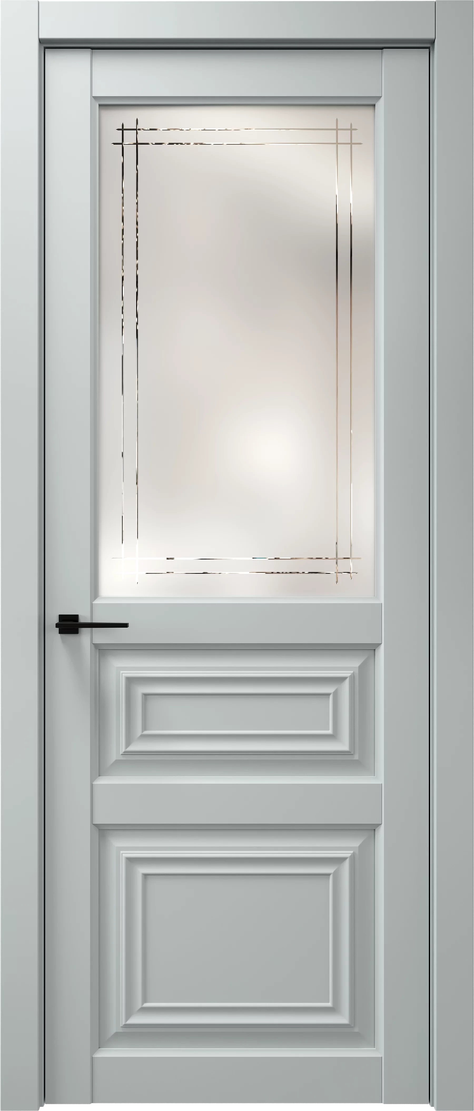 Двери Коллекции Toscana сборные классические двери, оформленные волнообразным багетом на филенчатой части. Объемная вставка в данной двери делает её отличной от обычных классических царговых дверей, которые представлены на рынке новое поколение царговых дверей: уход от простоты, внимание к деталям и совершенно новый внешний вид. Укутка деталей происходит по бесшовной технологии на стоевых частях полотна, а в остеклении используются стекла сатинат белого, бронзового и серого цвета, с обработкой алмазной гравировкой.